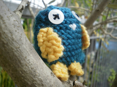 After a term of practically no craft, the holidays have finally arrived, and with it, another little knitted friend. After continually making the same knitted friends from the book I decided to get a bit creative and make a new animal, Ollie the owl. Ollie is a combination of the spook (Eee) and the bunny (Katherine), the differences being the mouth (for obvious reasons), the ears acting as wings, and the claw-tipped feet. It was incredibly fun to make and I hope to make many new creations! ;)